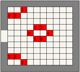 (Se tenho 1, 2,....,5, 6, etc montarias que precisam de Maturidade, e já estão equilibradas, posso colocar as 5 montarias cercadas juntas.) Após transferir as montarias utilize os emotions Beijo e Mostrar Armas para que elas te sigam onde deseja cercá-las. Se for com 3 itens é necessário que isso aconteça na quina do padoque, e você deve unir todas as montarias na célula do canto, e cercá-las com os itens como mostro abaixo.